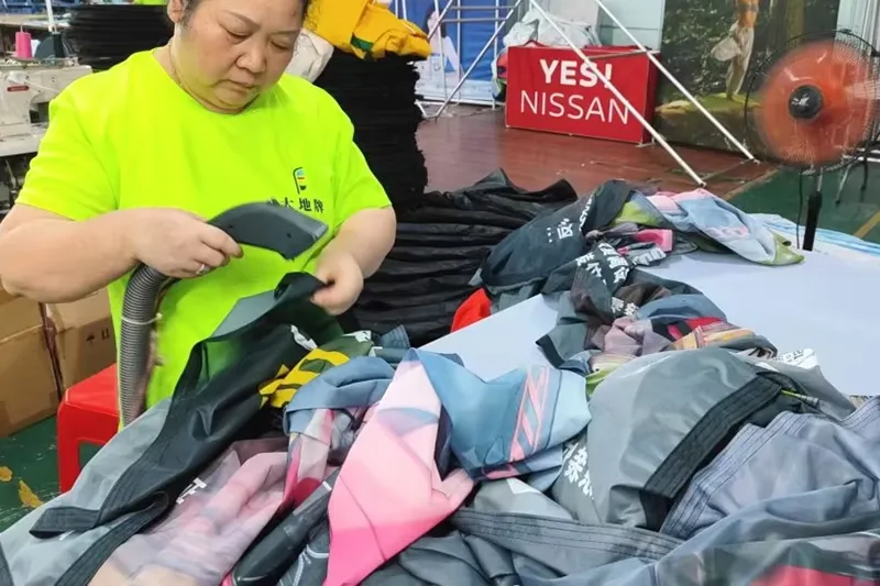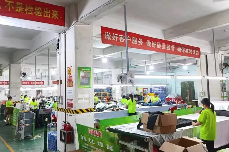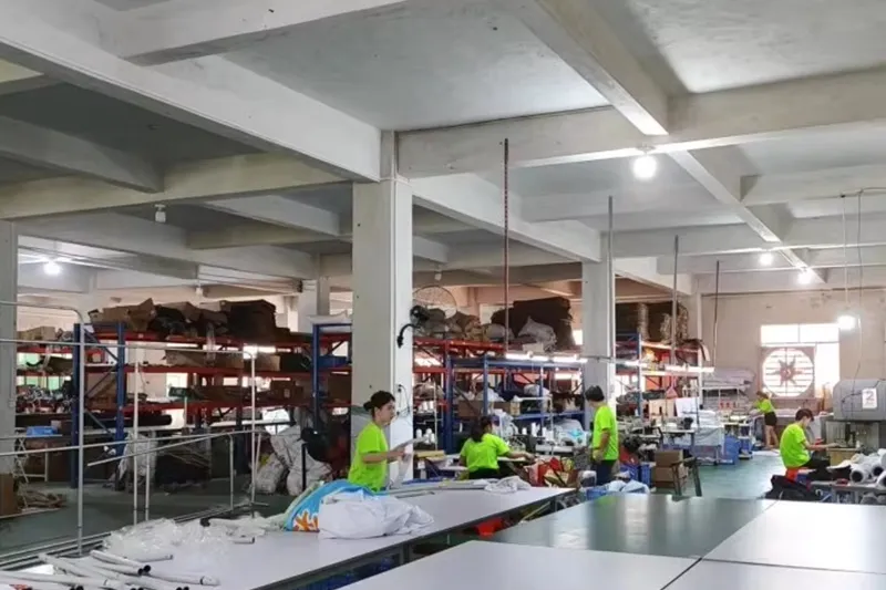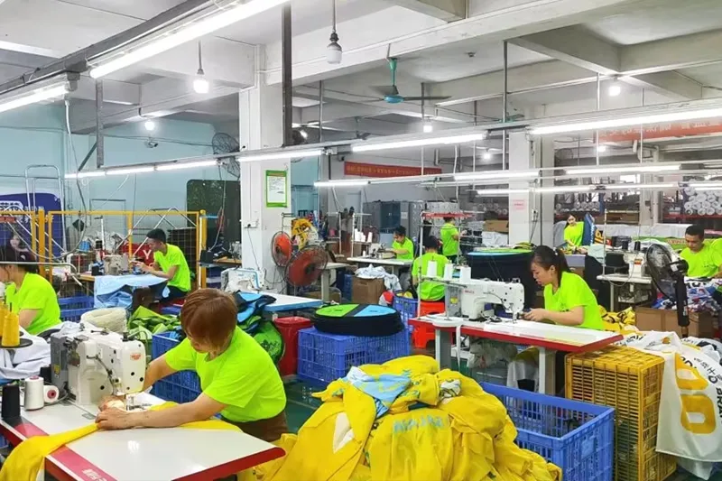 कार्यशाळा 10, 800 SQM, 130+ कर्मचारी, 20+ डिझायनर्स टीम, $5, 000, 000 फिक्स्ड ॲसेट मशीन, 50+ सेट मेटल प्रोसेसिंग मशीन, 100+ सेट्स फॅब्रिक आणि प्रिंटिंग मशीन, 1000000+ पोर्ट सेट्स 9% कस्टम ऑर्डर,
