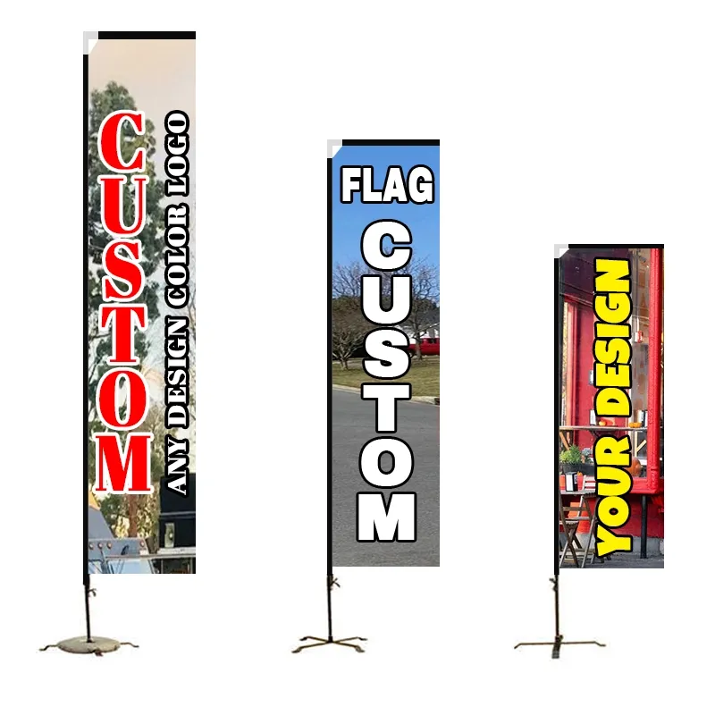 आयताकृती समुद्रकाठ ध्वज, फ्लॅट टॉप ध्वज, आयताकृती आकारासह, ज्याला ब्लॉक ध्वज, किनार ध्वज किंवा दुर्बिणीसंबंधी ध्वज असेही म्हणतात, ते ध्वजाचे प्रदर्शन कधीही सुंदर बनवू शकते. आयताकृती ध्वजांमध्ये अश्रू ध्वज किंवा पंख असलेल्या ध्वजांपेक्षा मोठे मुद्रणयोग्य क्षेत्र असते, उच्च प्रभाव विपणन संदेश आणि ब्रँडिंगसाठी अनुकूल असते.