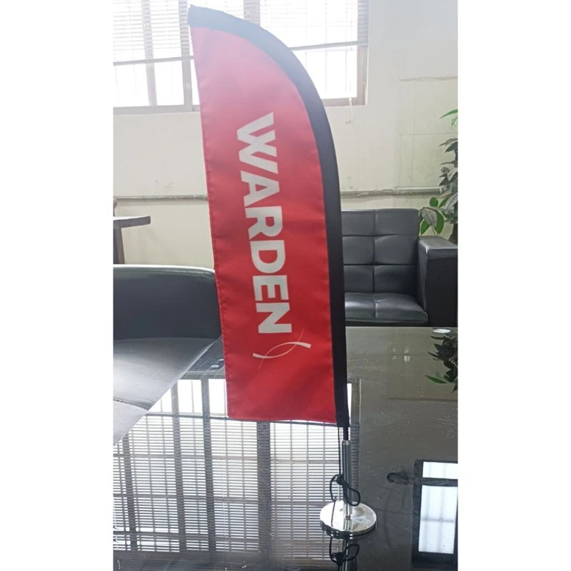 टेबल ध्वज एंटरप्राइझ लोगो, घोषवाक्य, उत्पादनाची चित्रे इत्यादीसह छापले जाऊ शकतात, जे प्रसिद्धी आणि जाहिरातीचे साधन म्हणून काम करतात. प्रदर्शने, ट्रेड शो इत्यादींमध्ये टेबल फ्लॅग हे मार्केटिंगचे महत्त्वाचे साधन आहे.
